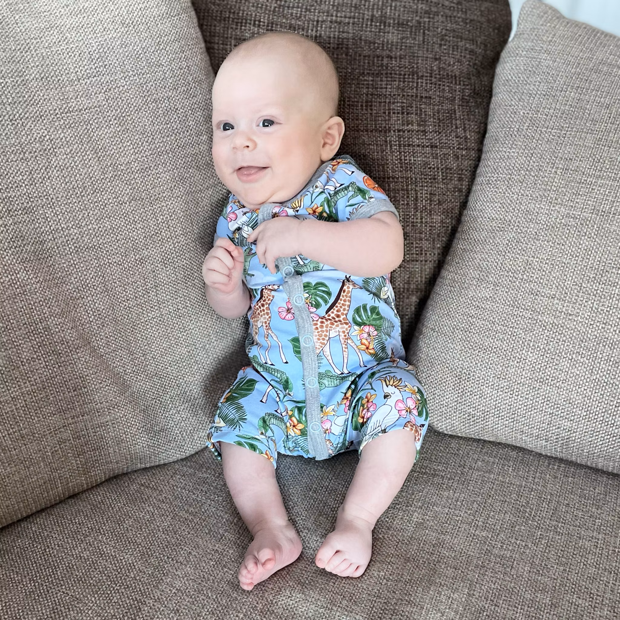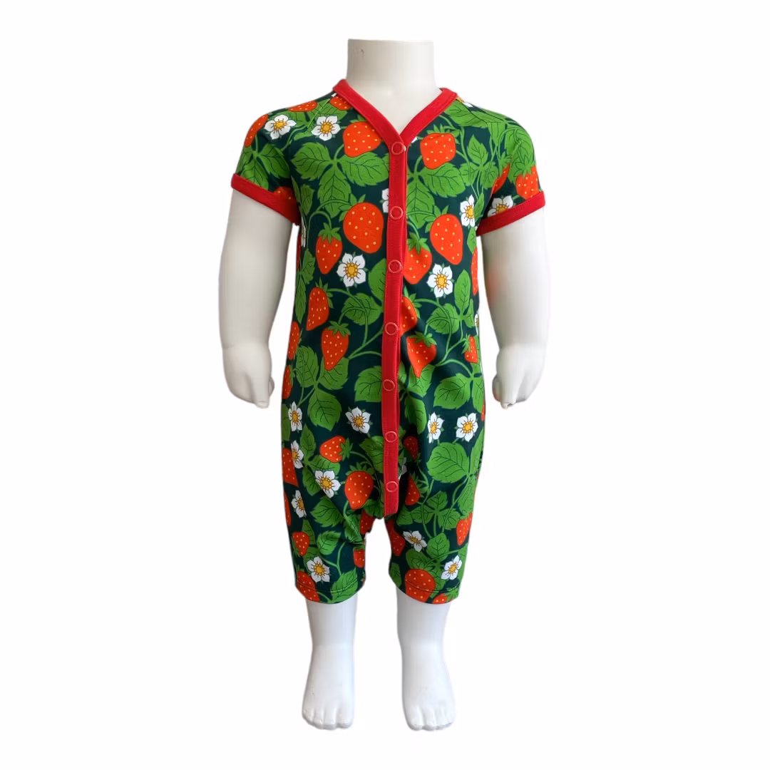 Heldress av baggy-modell med korta armar och ben med knäppning mitt fram.