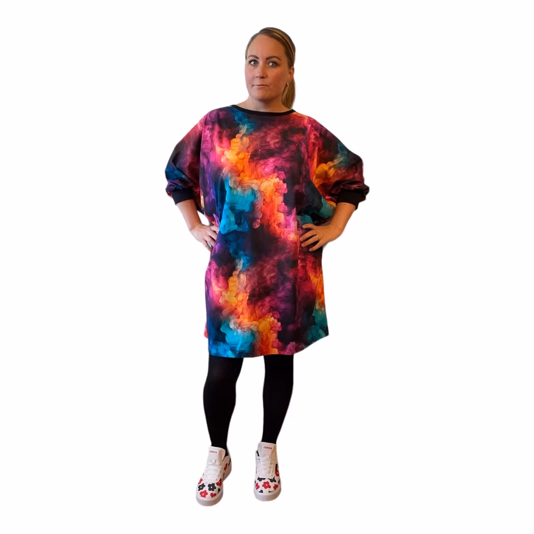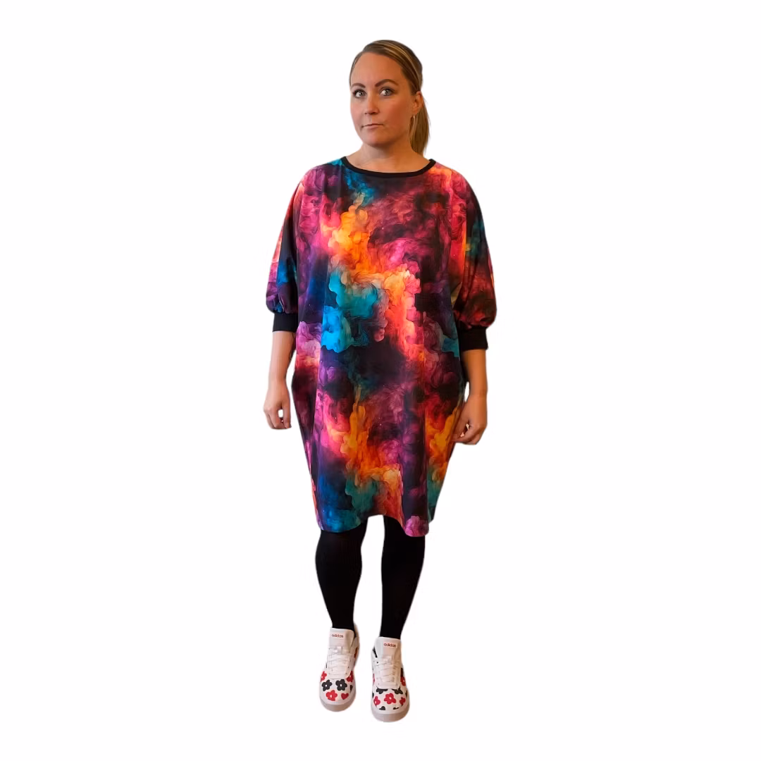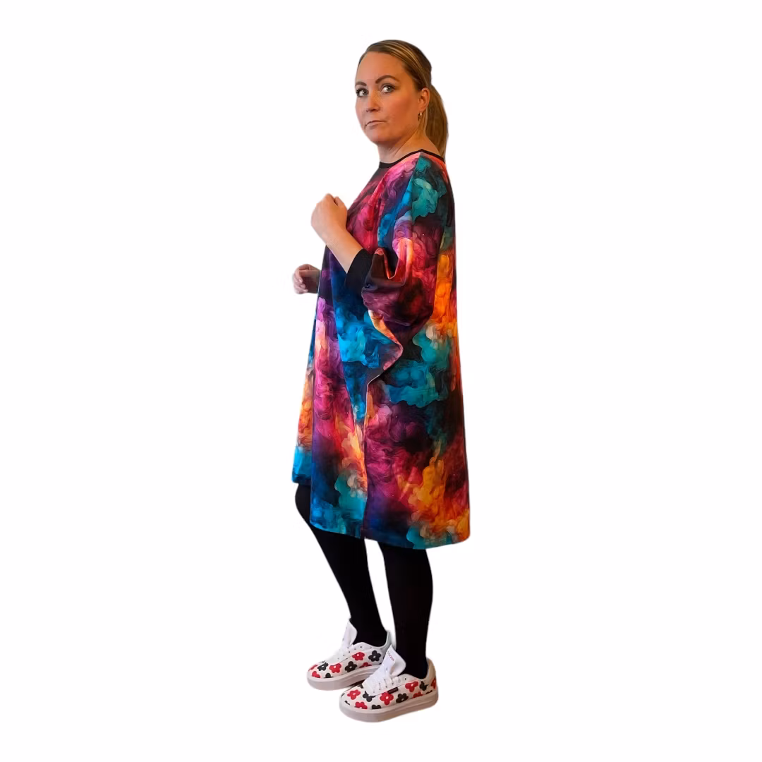 Dublin är en riktigt oversized klänning! Nästan rak modell, smalnar något nedtill med en kortare "ärm" som har mudd i avslut.