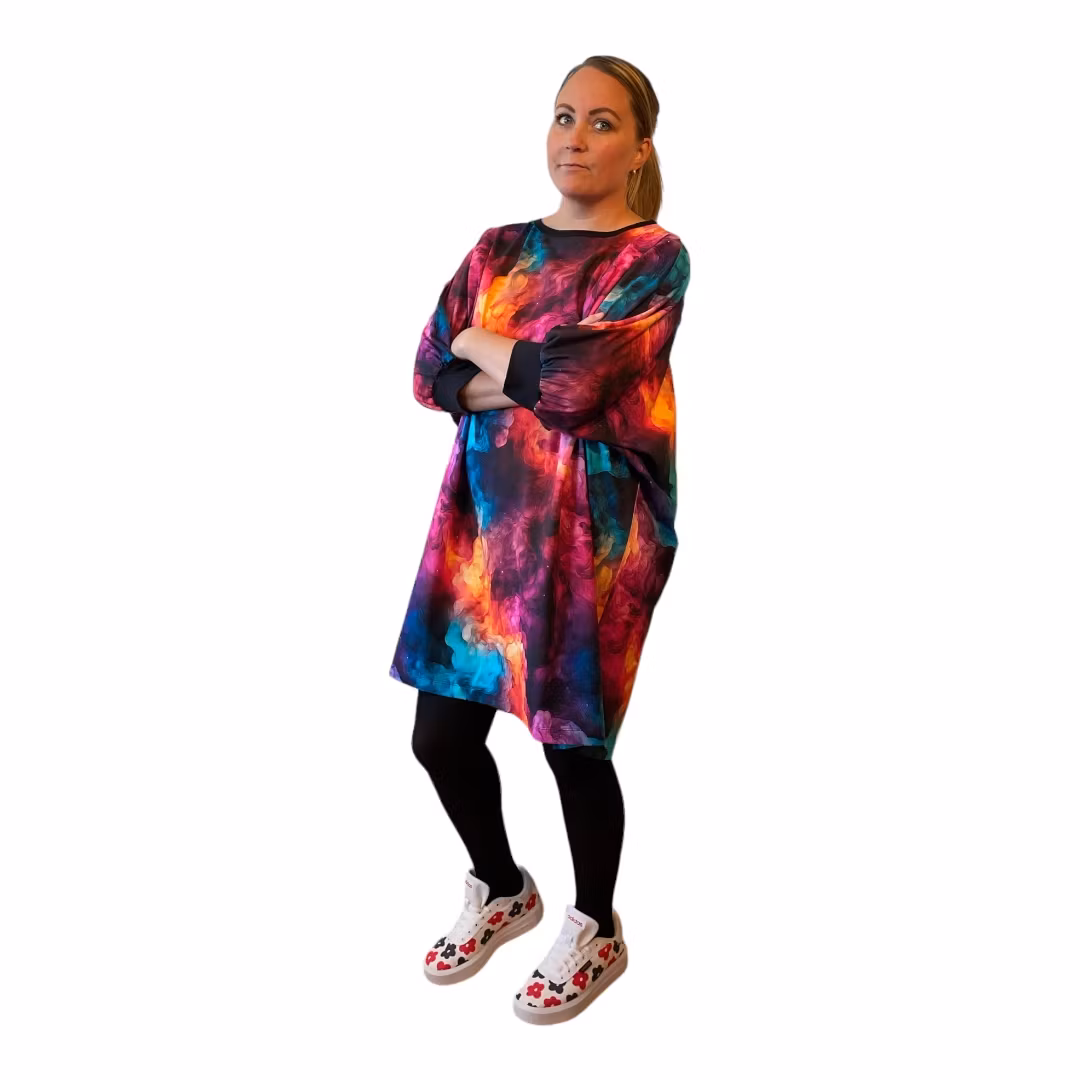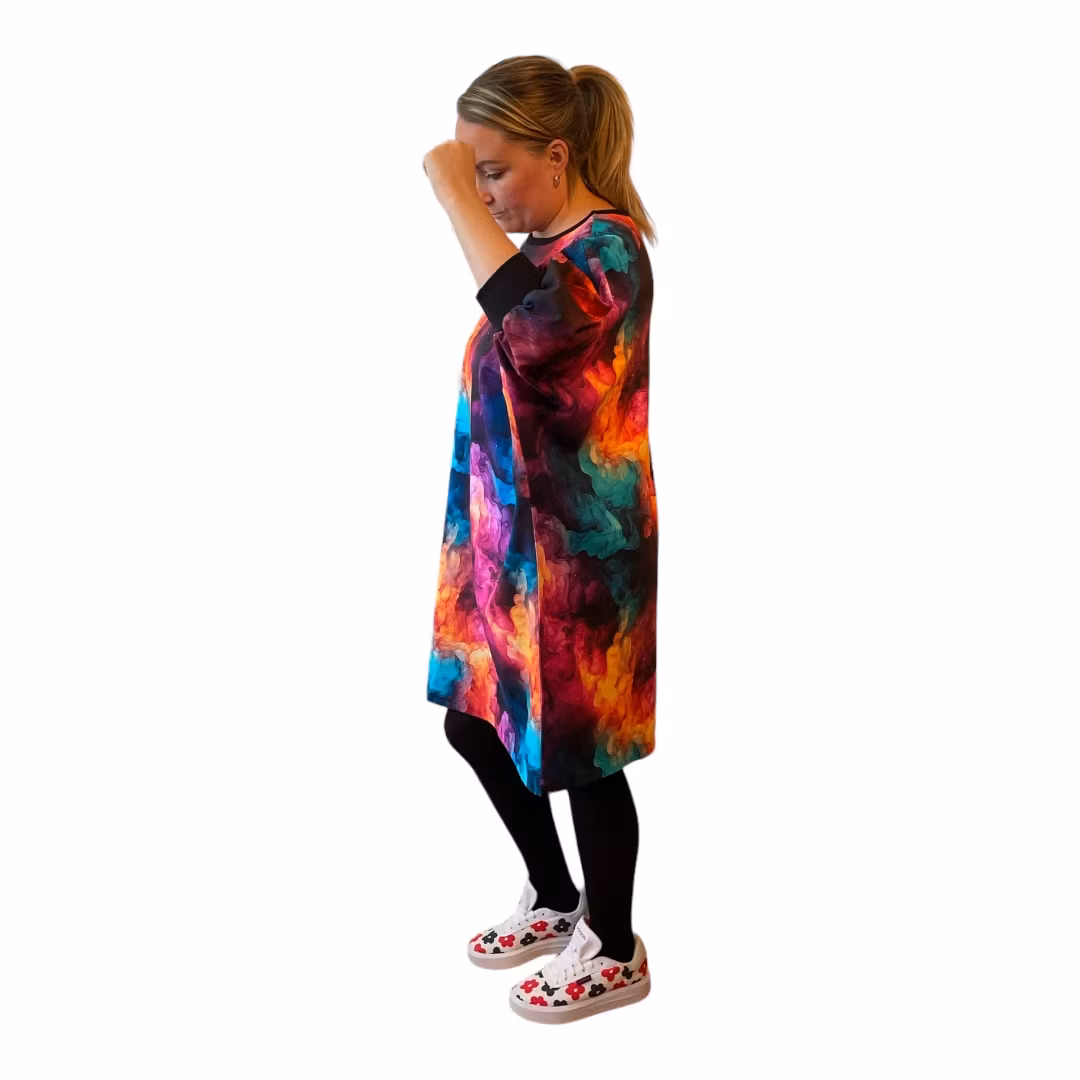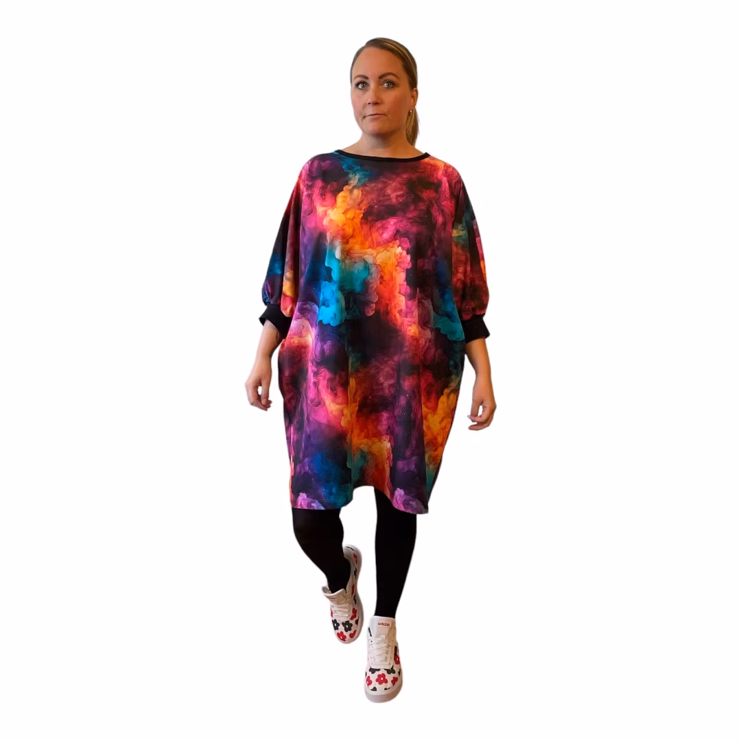 Dublin är en riktigt oversized klänning! Nästan rak modell, smalnar något nedtill med en kortare "ärm" som har mudd i avslut.
